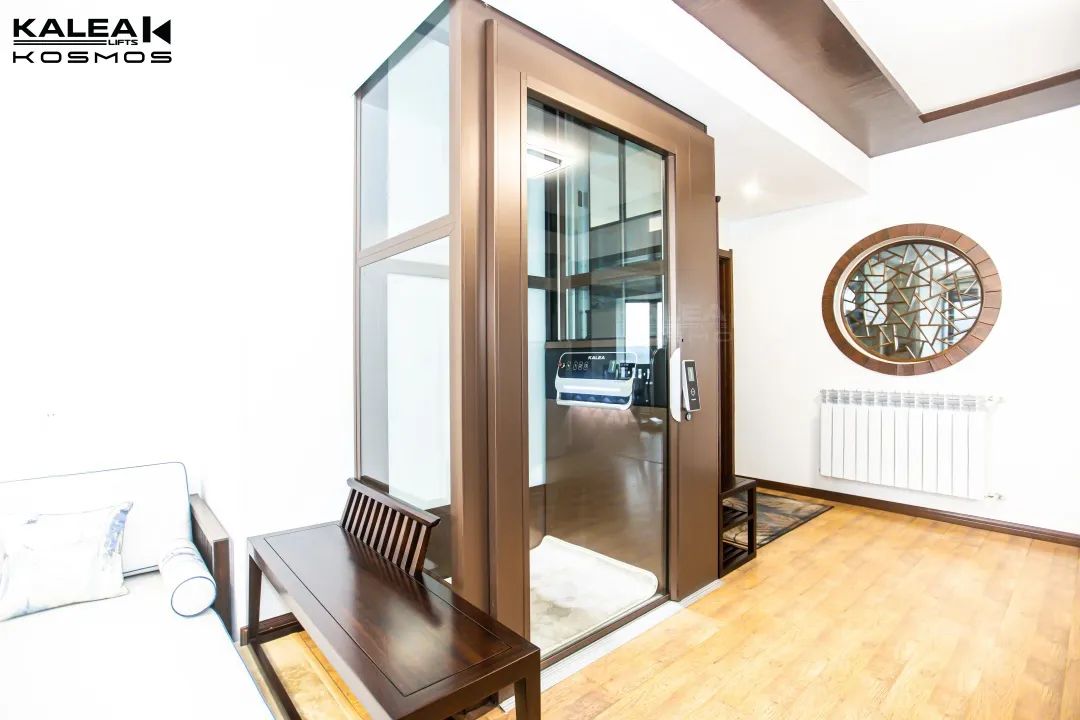 KOSMOS K70被安装于入门位置,一进家门,便可乘梯轻松到达其余楼层。梯身采用大片的宽幅窄框玻璃,更通透明亮,无需担心光线遮挡障碍;乘梯自在穿梭时,日光透入,照见一室典雅。